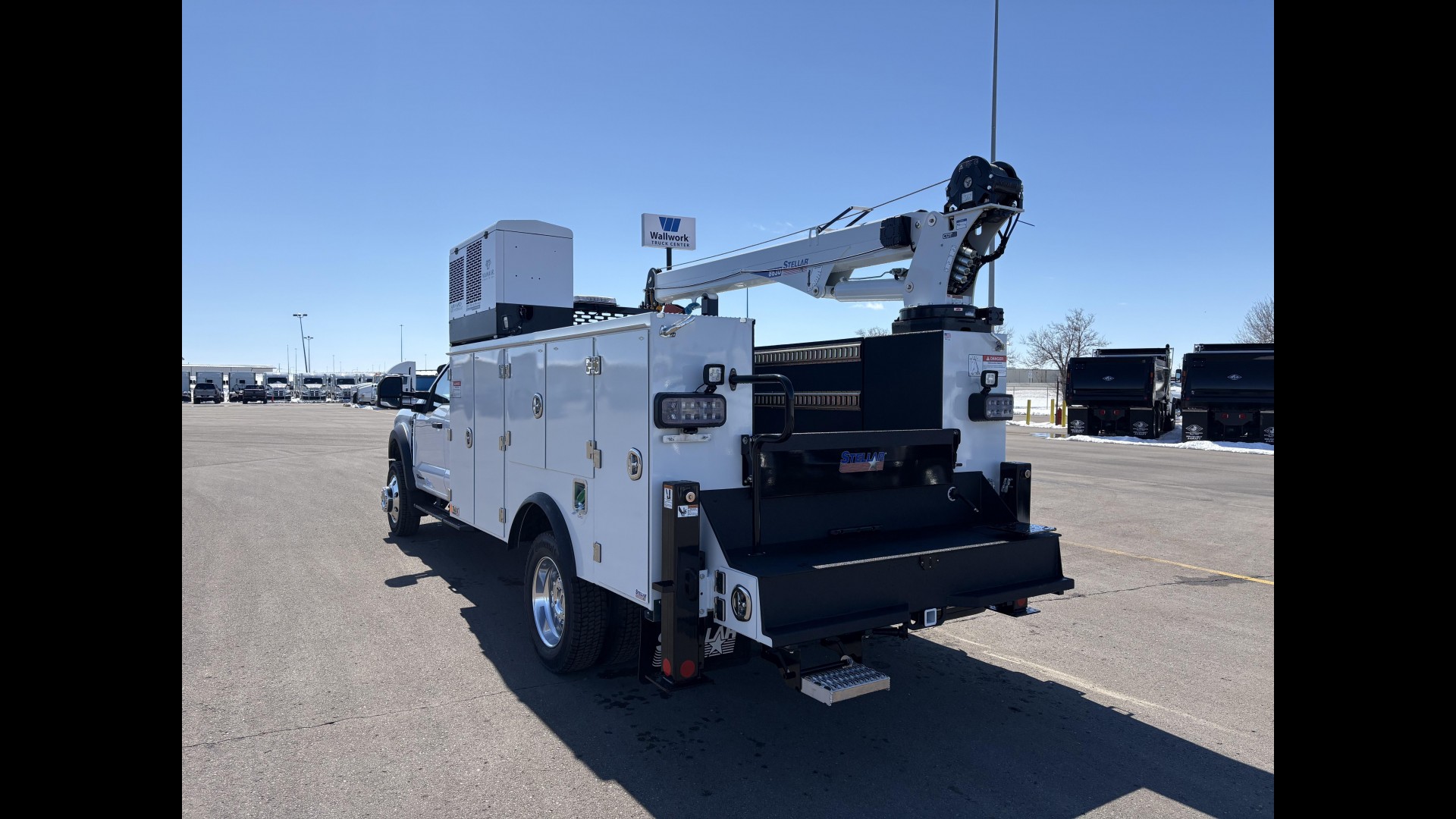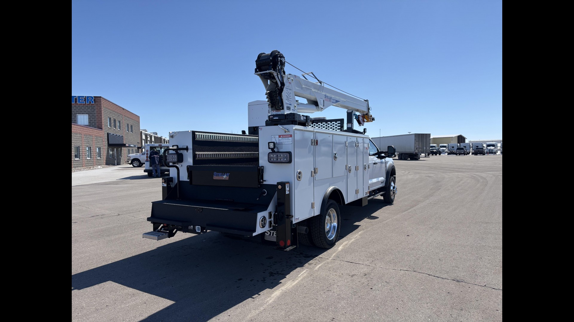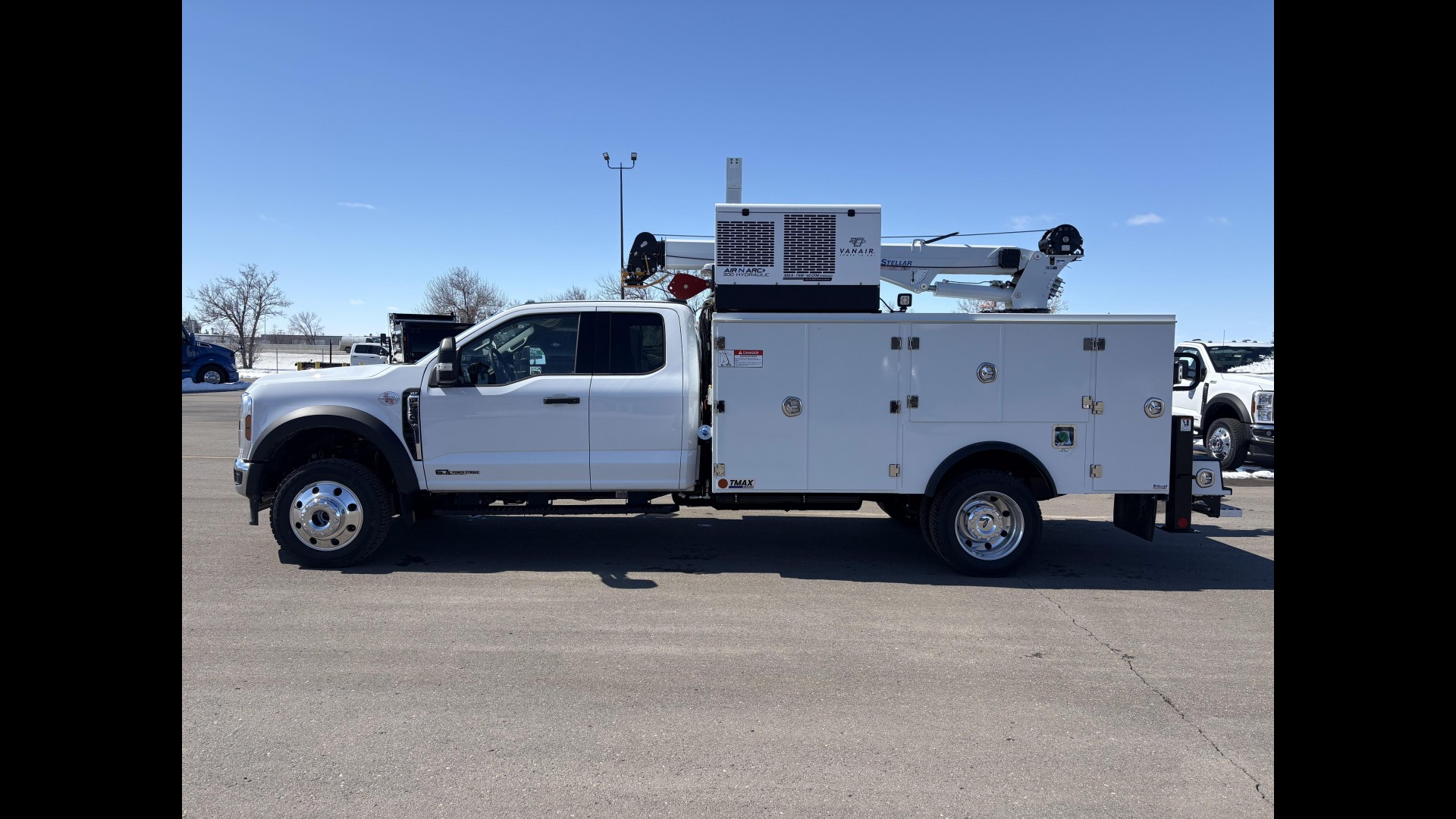 Body Information - Stellar TMAX1-11 Aluminum Utility Body | Stellar 8630 Telescoping Crane | VanAir Air N Arc 300H 19GPM Multi-Function | 25 Gallon Air Tank Kit | 20 Gallon Hydraulic Reservoir | 3/8" x 50' Hose Reel | 2 Bottle Strut Mounted Oxy-Acet Holder | Rock Guard Kit | Cab Guard | E Track | Trailer Plug |
