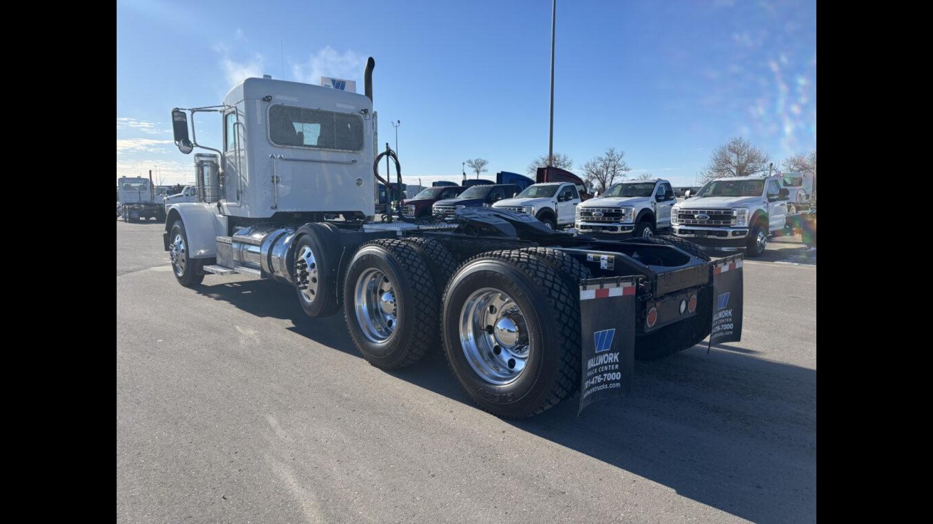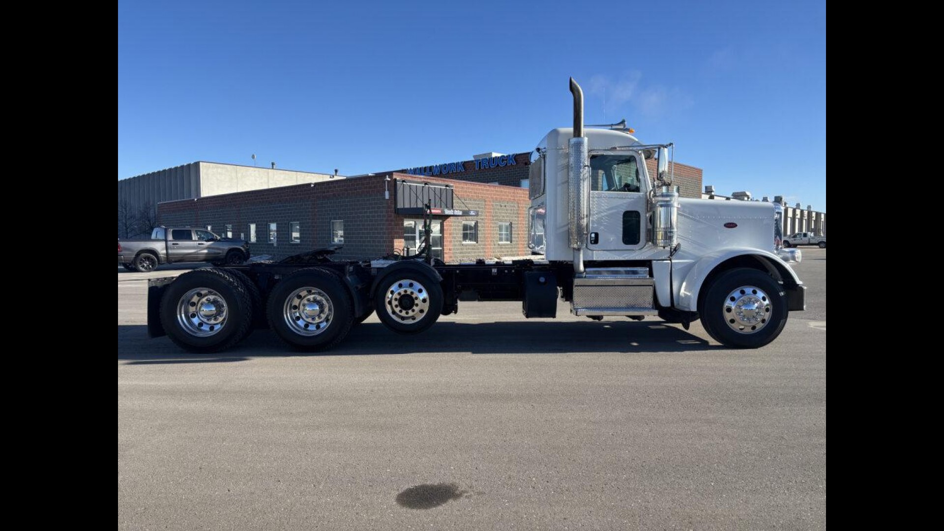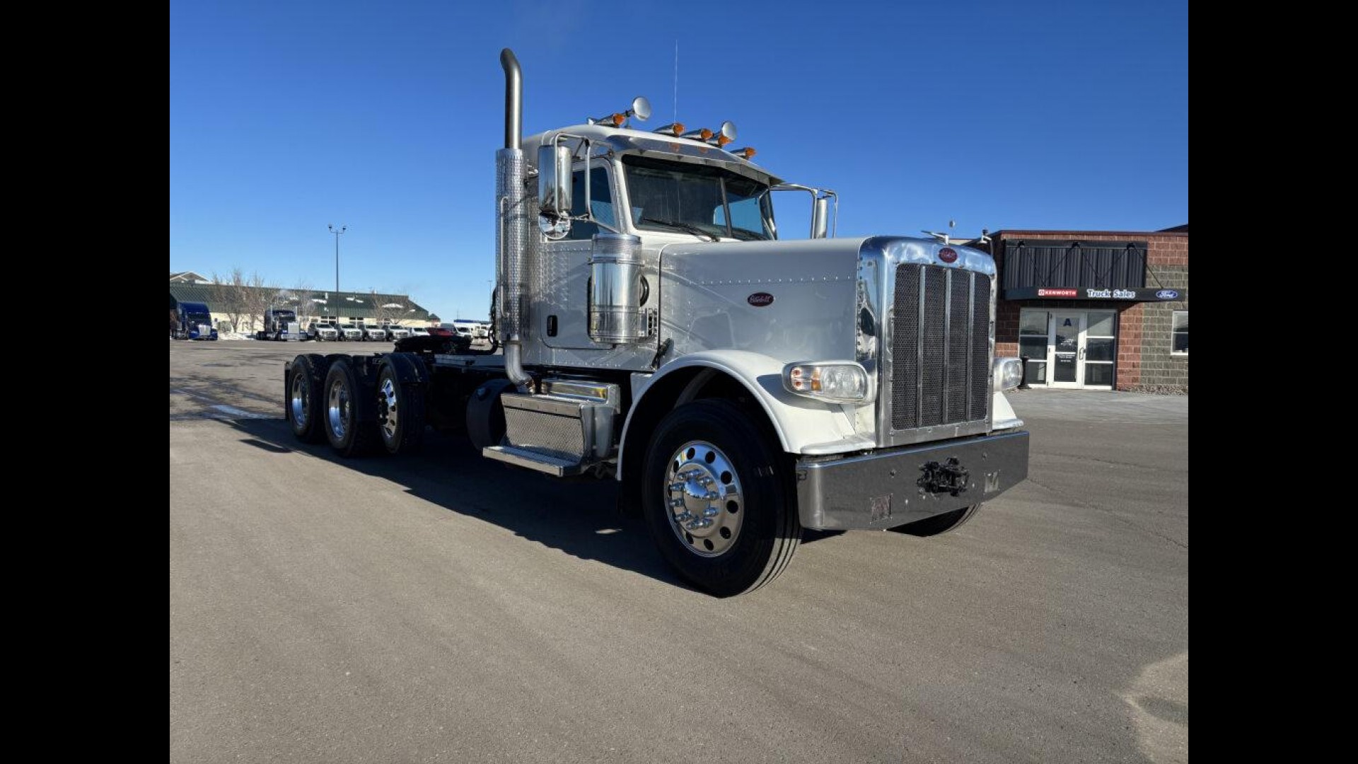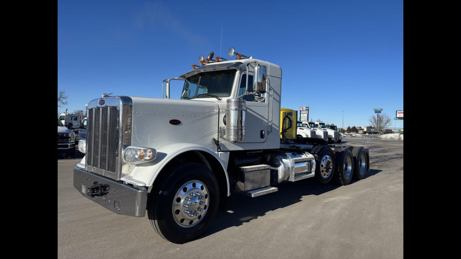 2023 PETERBILT 389 | CUMMINS X15 | 500 HP | AUTOMATED TRANSMISSION | 13.5K STEERABLE PUSHER | 13.2K FA | 46K REARS | LOW MILES! | 255" WB | 3.91 REAR RATIO 120 GAL FUEL TANK | READY TO GO TO WORK |