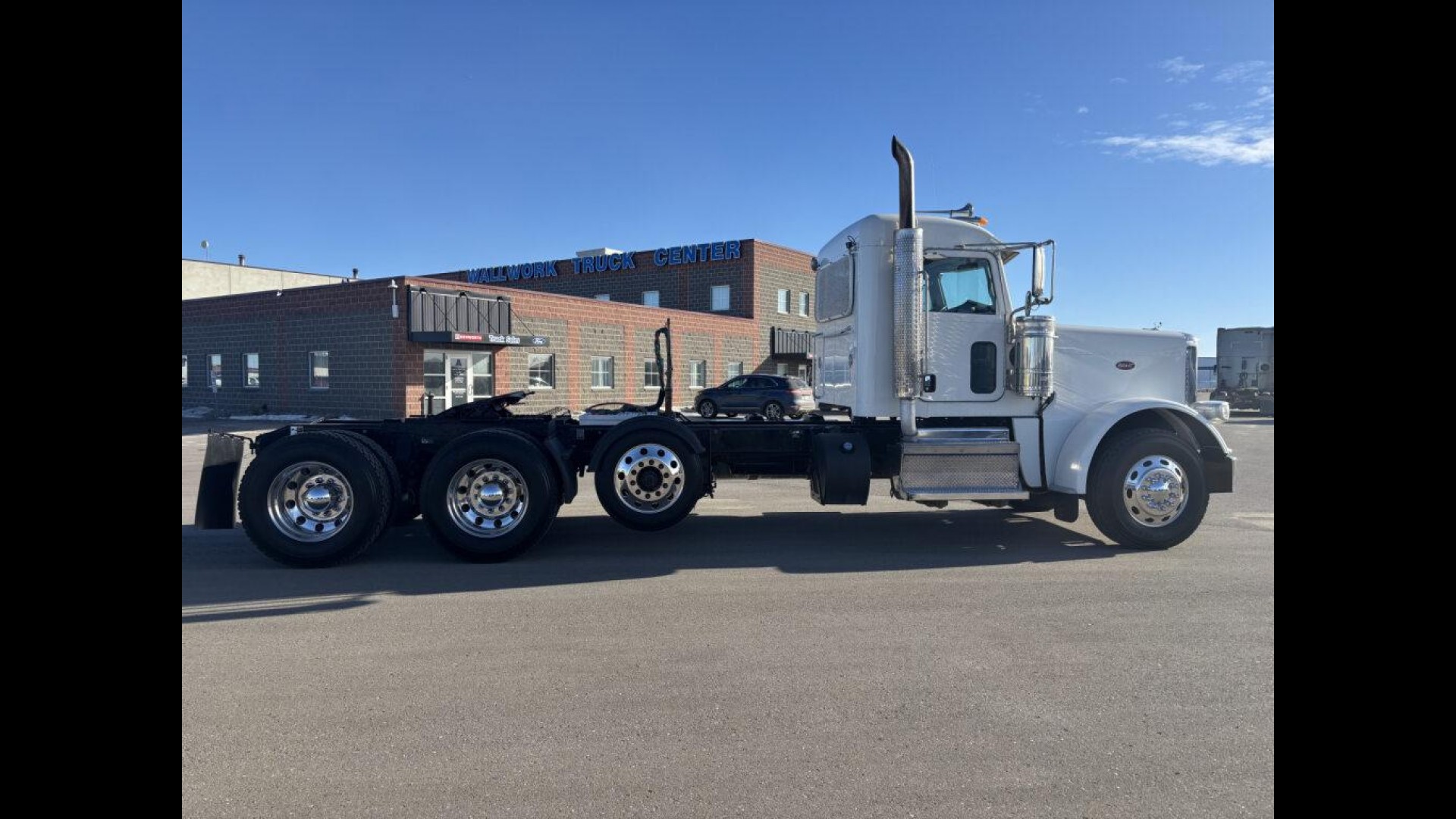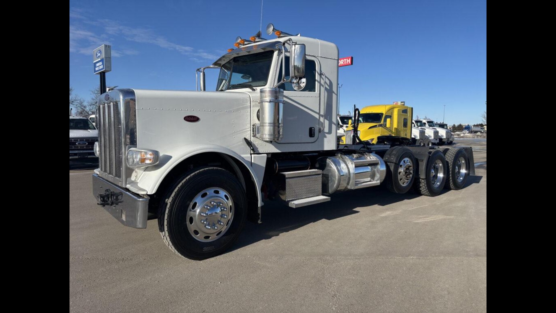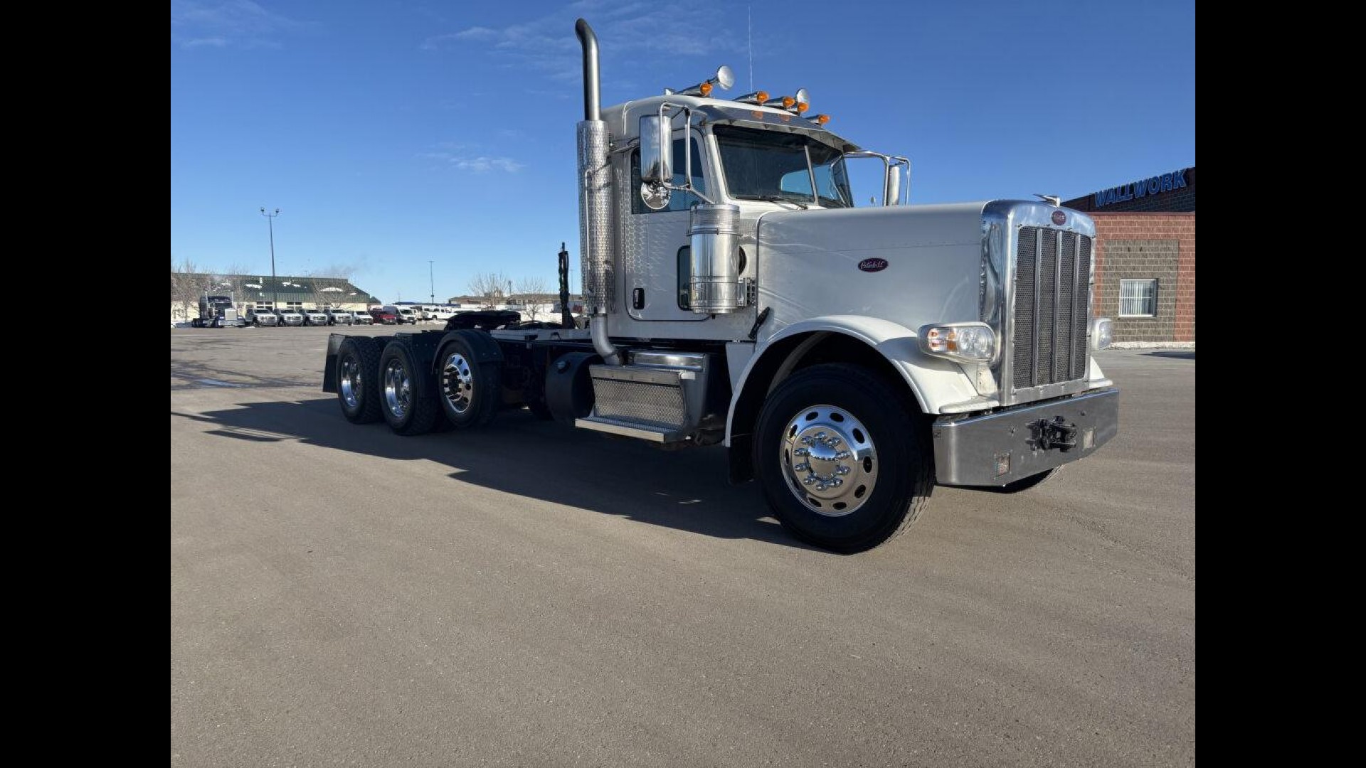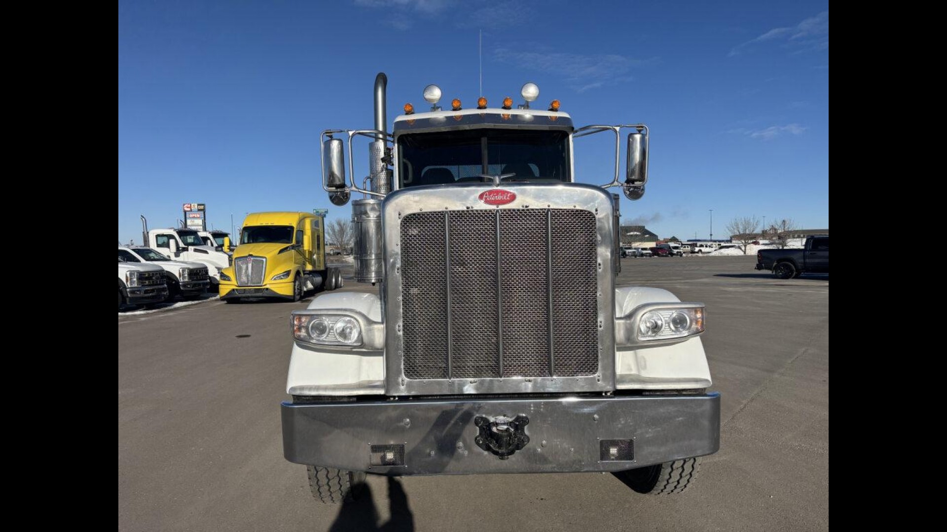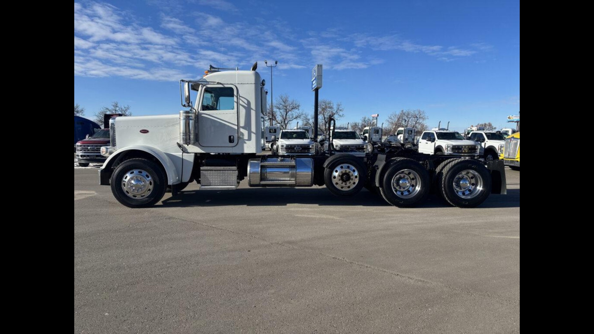 2023 PETERBILT 389 | CUMMINS X15 | 500 HP | 18 SPD MANUAL TRANSMISSION | 13.5K STEERABLE PUSHER | 13.2K FA | 46K REARS | LOW MILES! | 255" WB | 3.91 REAR RATIO 120 GAL FUEL TANK | READY TO GO TO WORK |